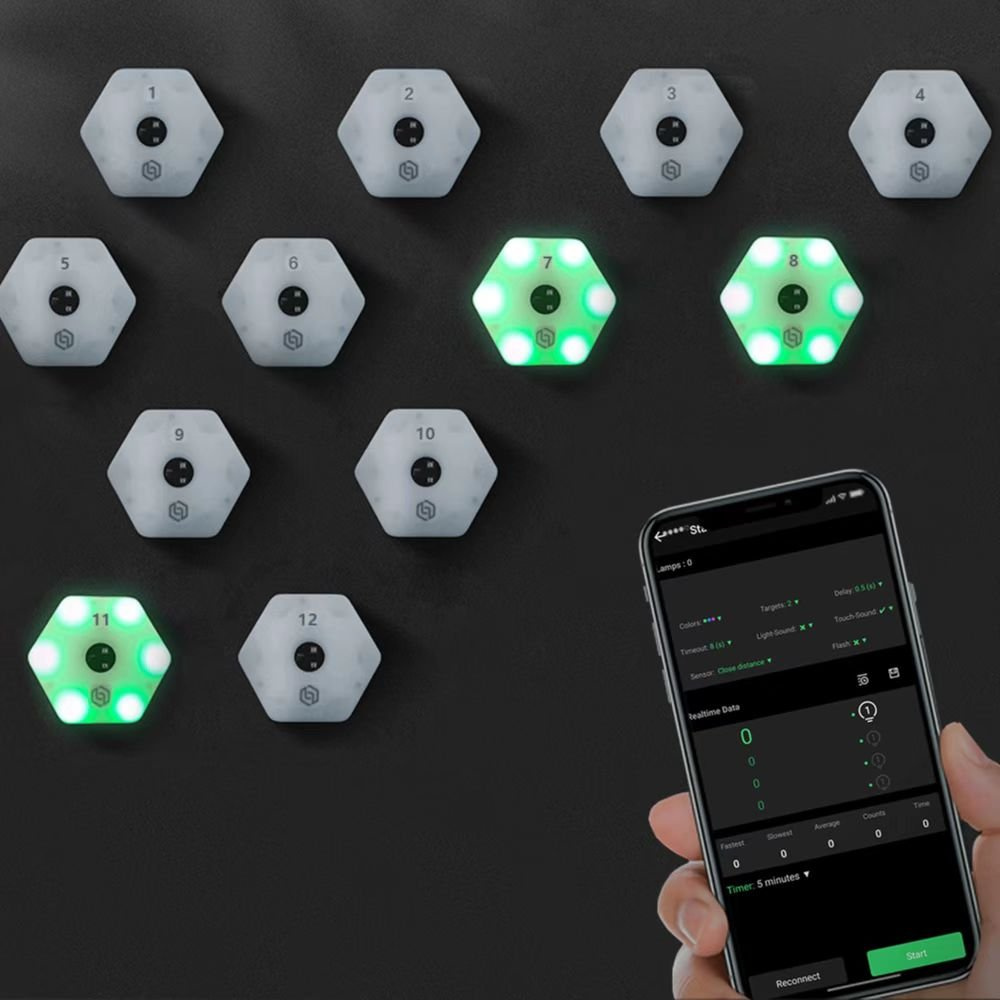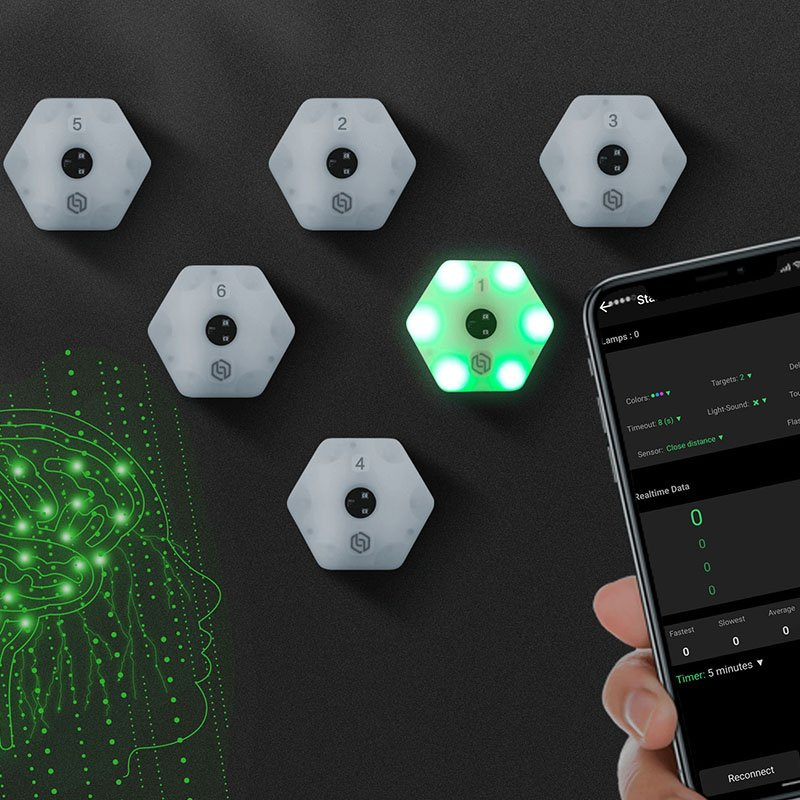 Profesionální tréninkový systém bezdrátových LED světel určený pro rozvoj rychlosti reakce, rozhodování a pohybové dynamiky. Sada 8 modulů je ovládána pomocí mobilní aplikace a umožňuje variabilní nastavení tréninkových režimů podle úrovně sportovce.